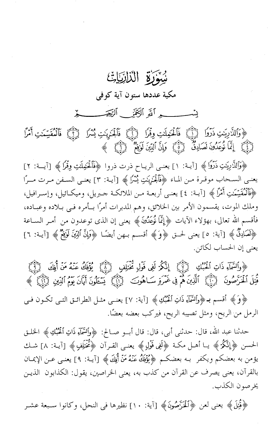تفسير سورة الذاريات من الآية ( 1 ) إلى الآية ( 6 ) .