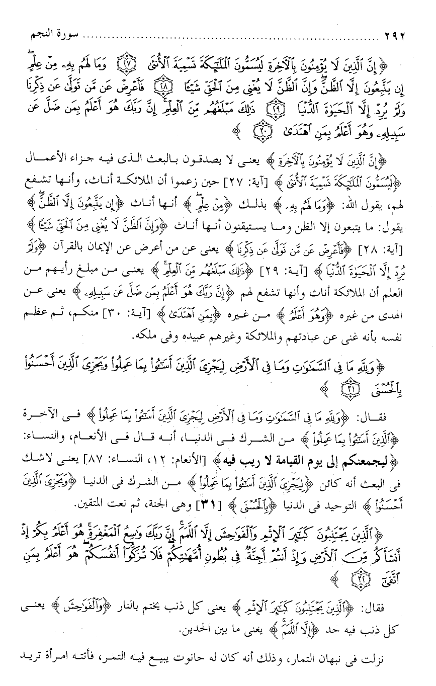 تفسير سورة النجم من الآية ( 32 ) فقط .