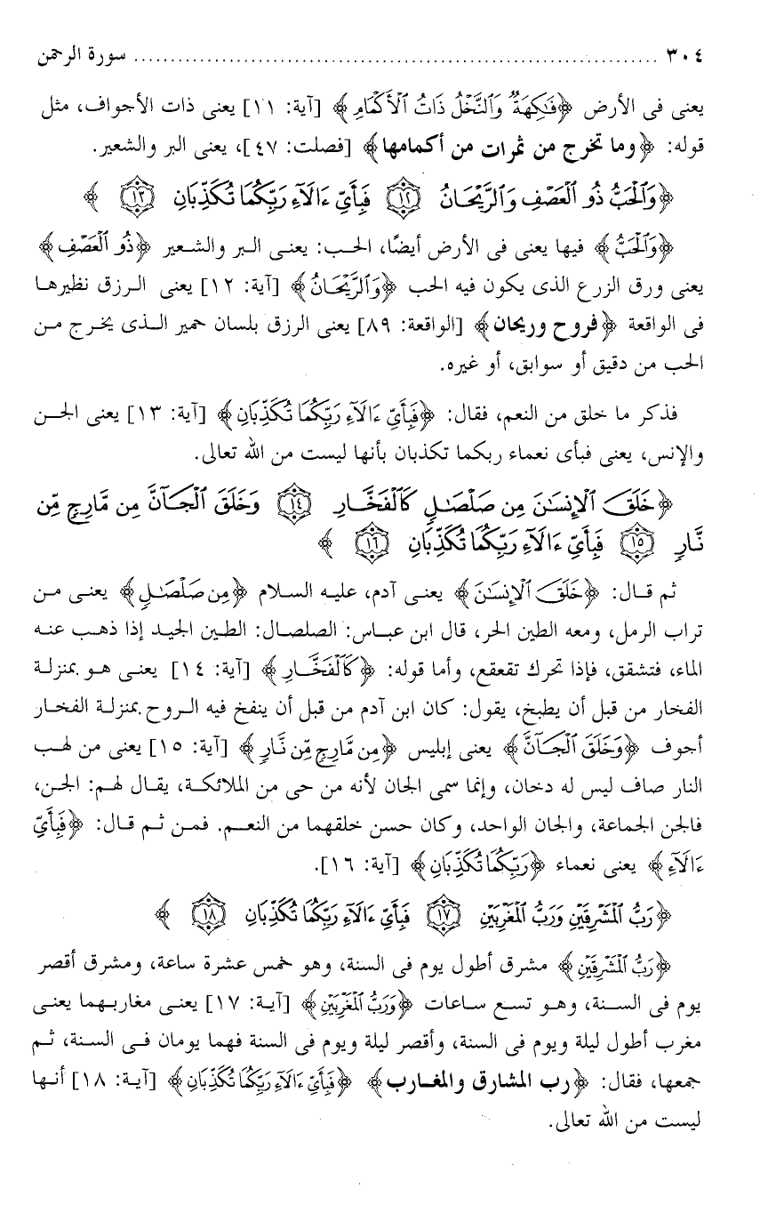 تفسير سورة الرحمن من الآية ( 12 ) إلى الآية ( 13 ) .
