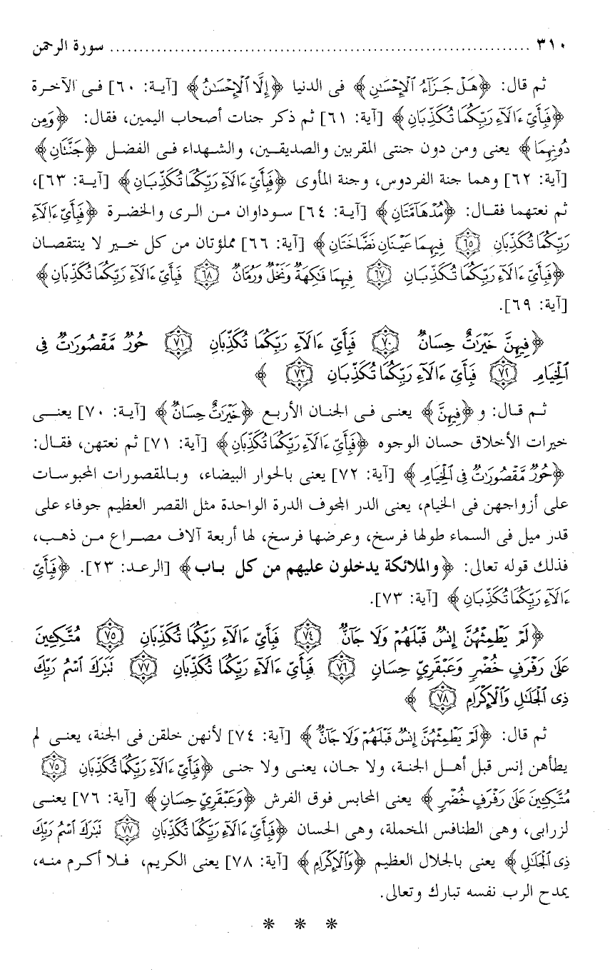 تفسير سورة الرحمن من الآية ( 74 ) إلى الآية ( 78 ) .
