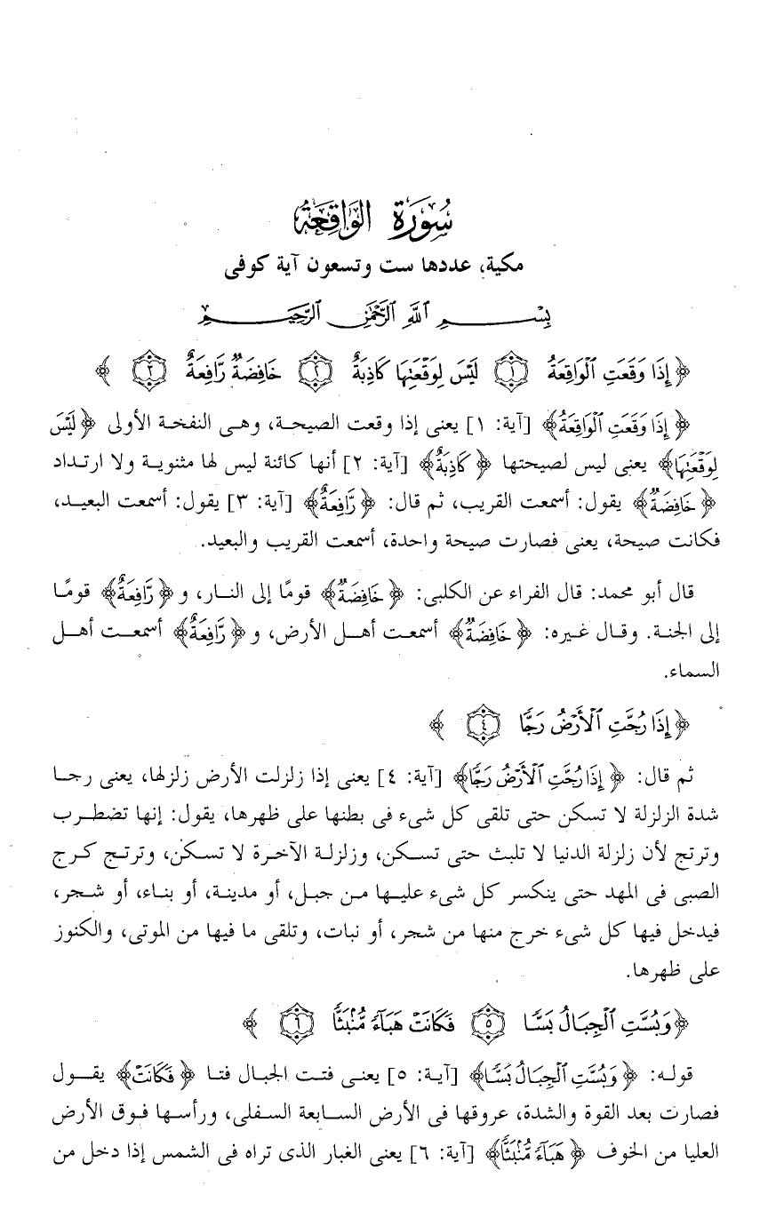 تفسير سورة الواقعة من الآية ( 4 ) فقط .