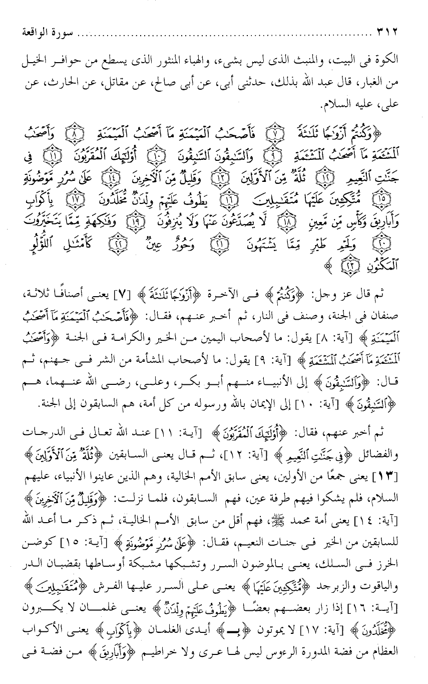 الواقعة : ( 16 ) متكئين عليها متقابلين