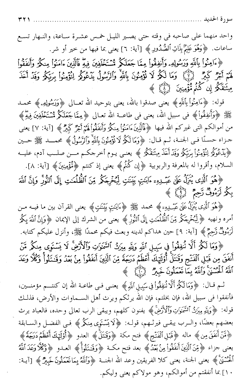 تفسير سورة الحديد من الآية ( 10 ) فقط .