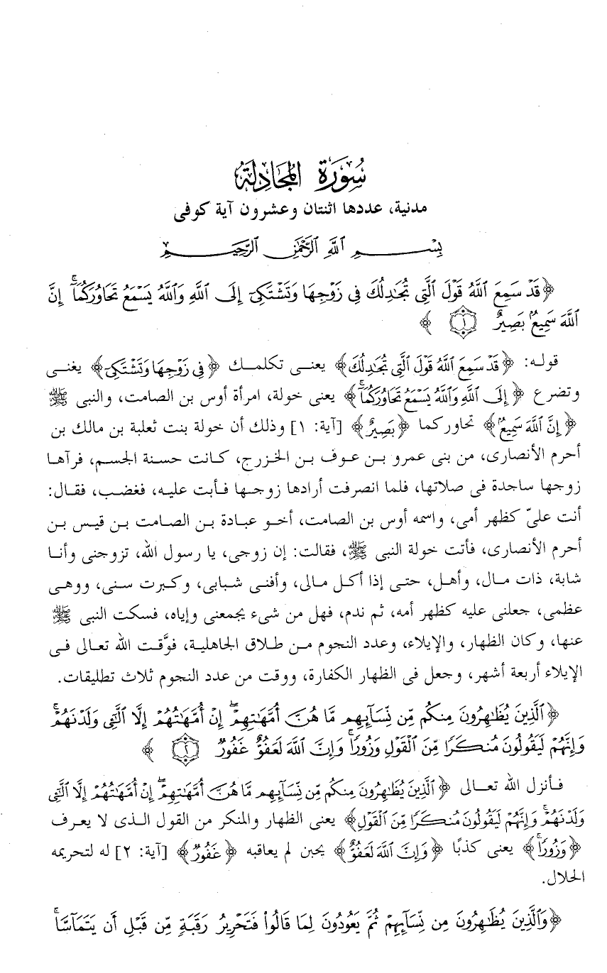 تفسير سورة المجادلة من الآية ( 1 ) فقط .