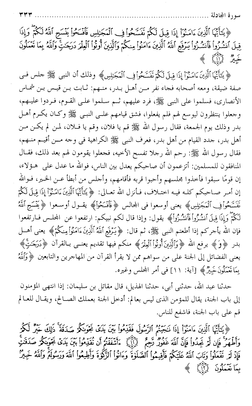 تفسير سورة المجادلة من الآية ( 11 ) فقط .