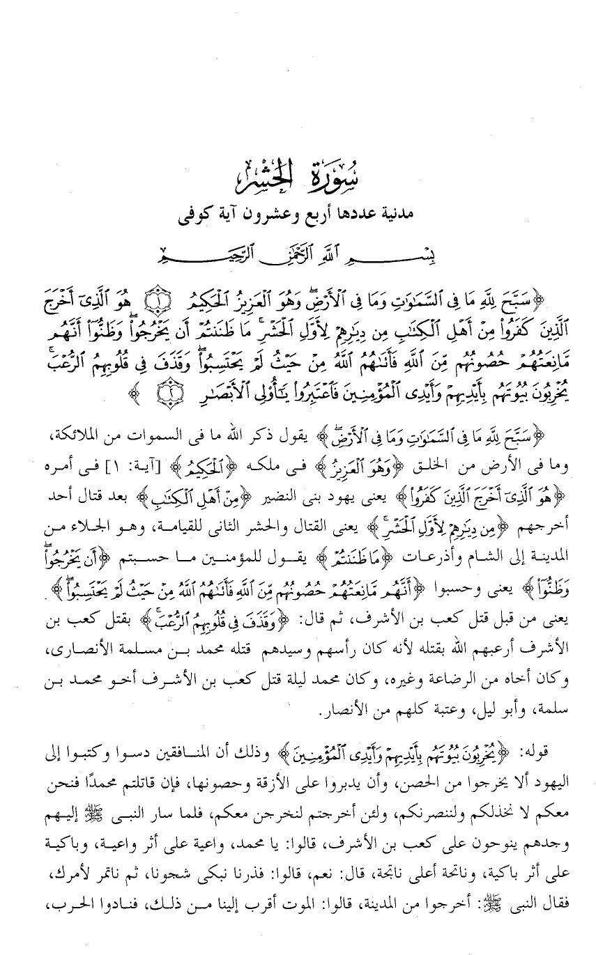 تفسير سورة الحشر من الآية ( 1 ) إلى الآية ( 2 ) .