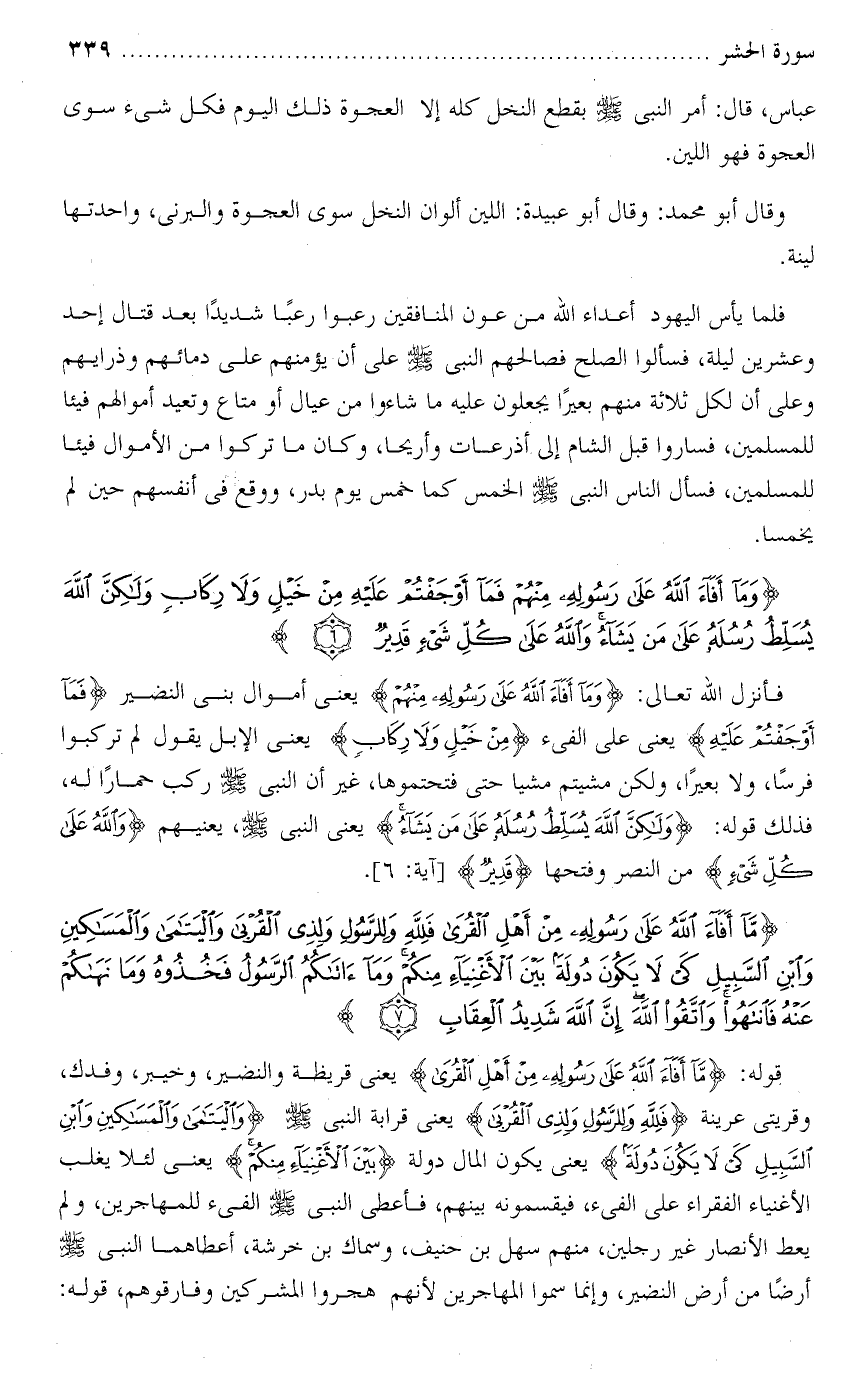 تفسير سورة الحشر من الآية ( 6 ) فقط .