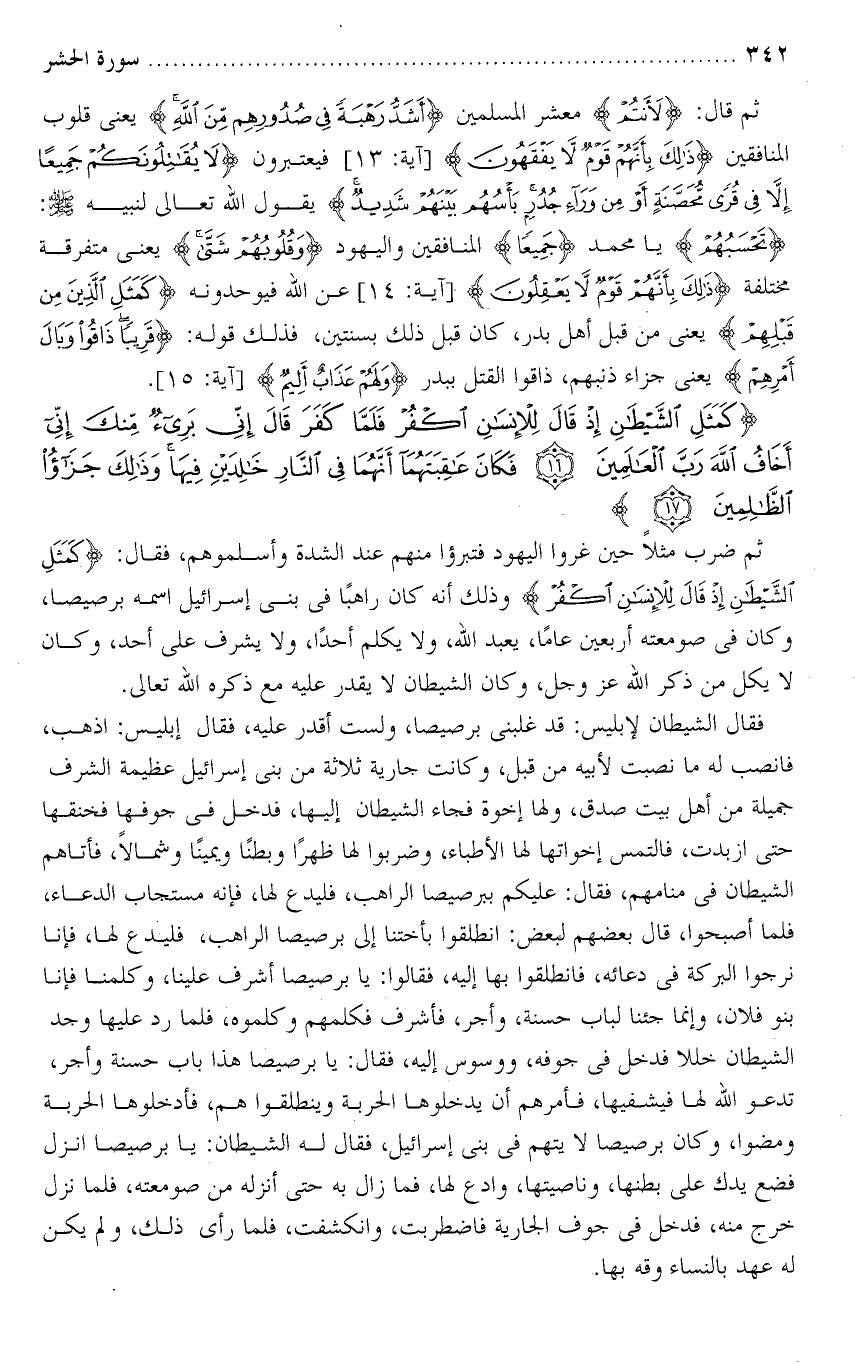 تفسير سورة الحشر من الآية ( 16 ) إلى الآية ( 17 ) .
