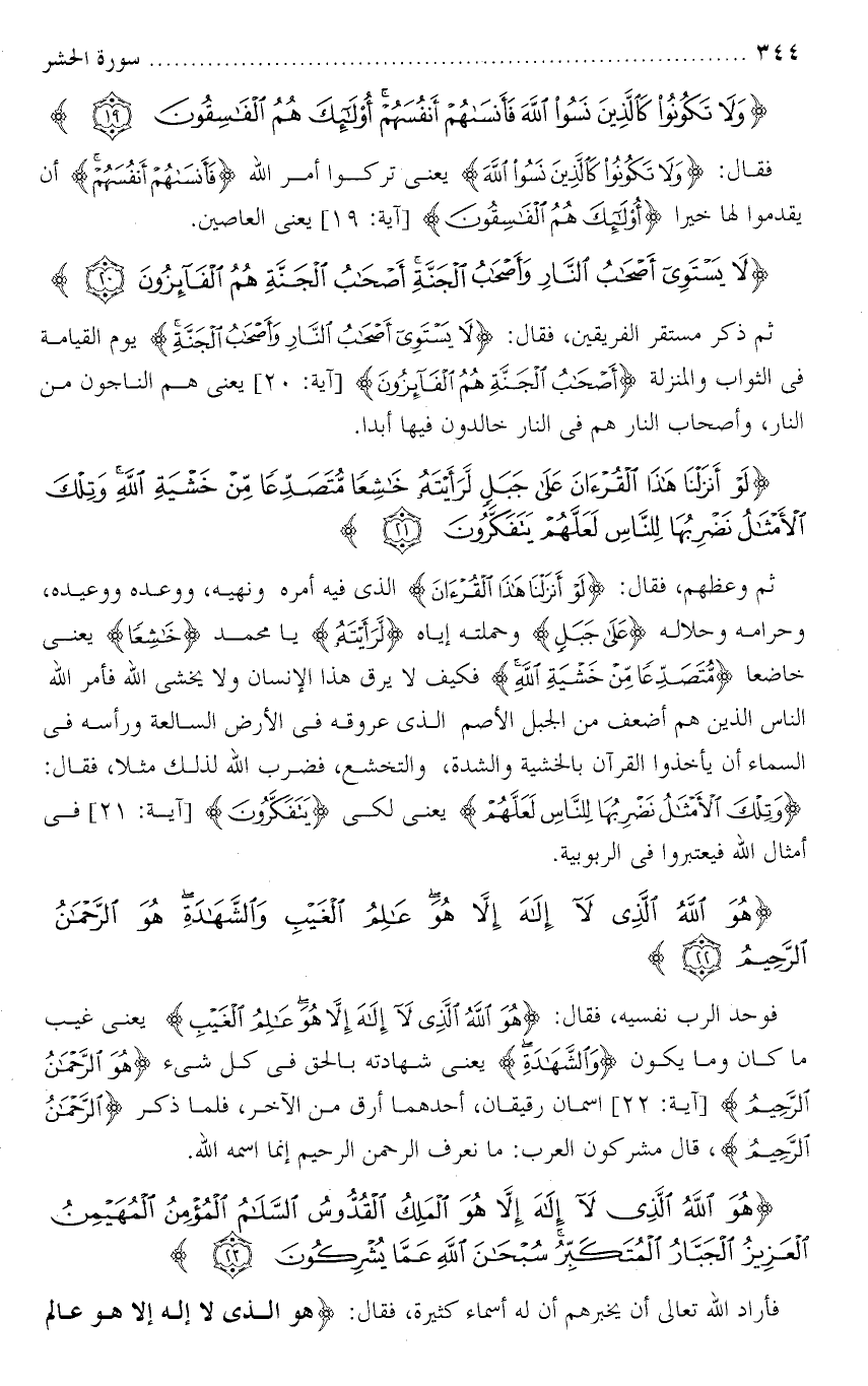 تفسير سورة الحشر من الآية ( 19 ) فقط .