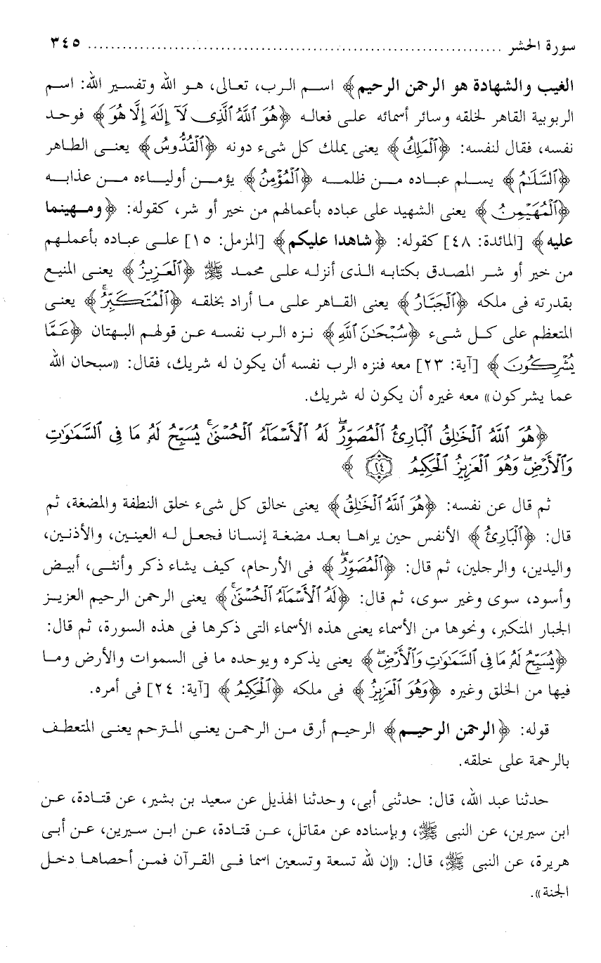 تفسير سورة الحشر من الآية ( 24 ) فقط .