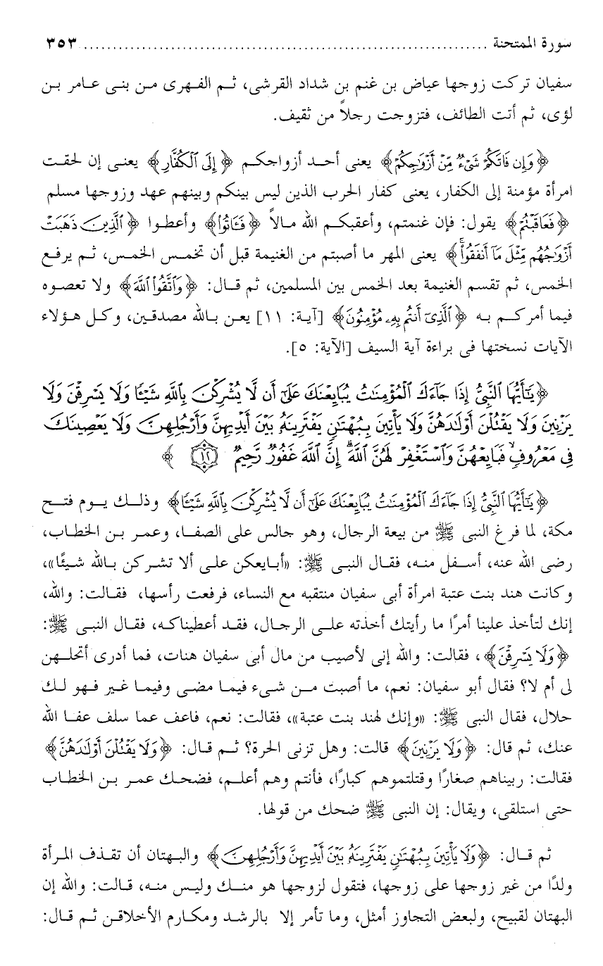 تفسير سورة الممتحنة من الآية ( 12 ) فقط .