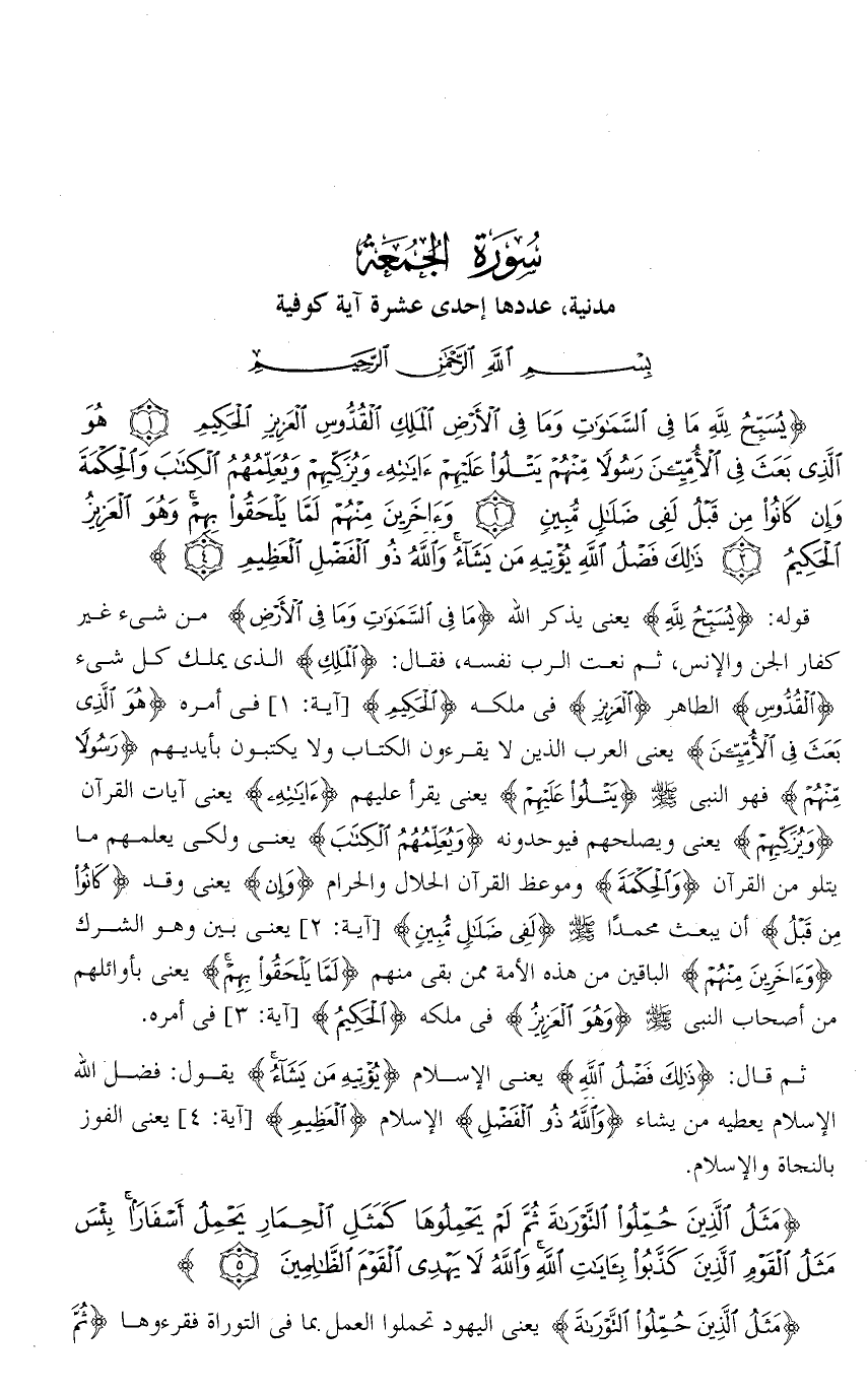 تفسير سورة الجمعة من الآية ( 5 ) فقط .