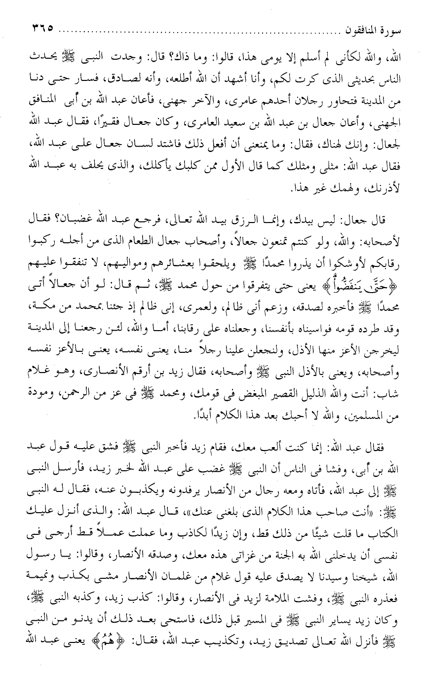 وأصحابه ، ويعني بالأذل النبي ( صلى الله عليه وسلم ) وأصحابه ، فقال زيد بن أرقم الأنصاري ، وهو غلام