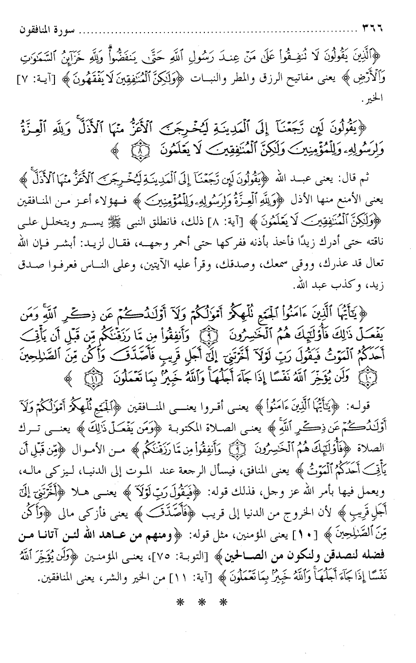 تفسير سورة المنافقون من الآية ( 9 ) إلى الآية ( 11 ) .