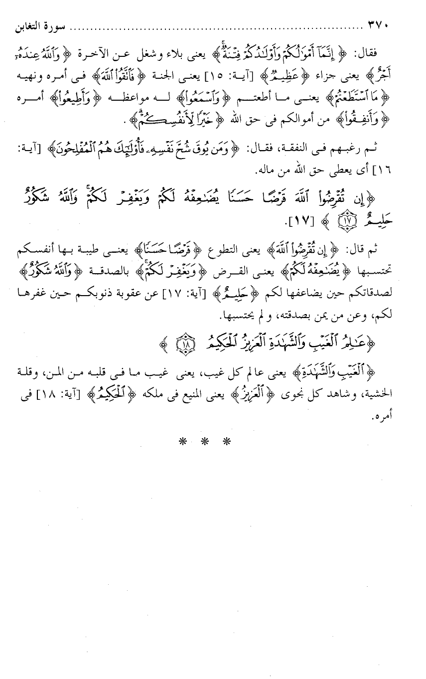 تفسير سورة التغابن من الآية ( 18 ) فقط .