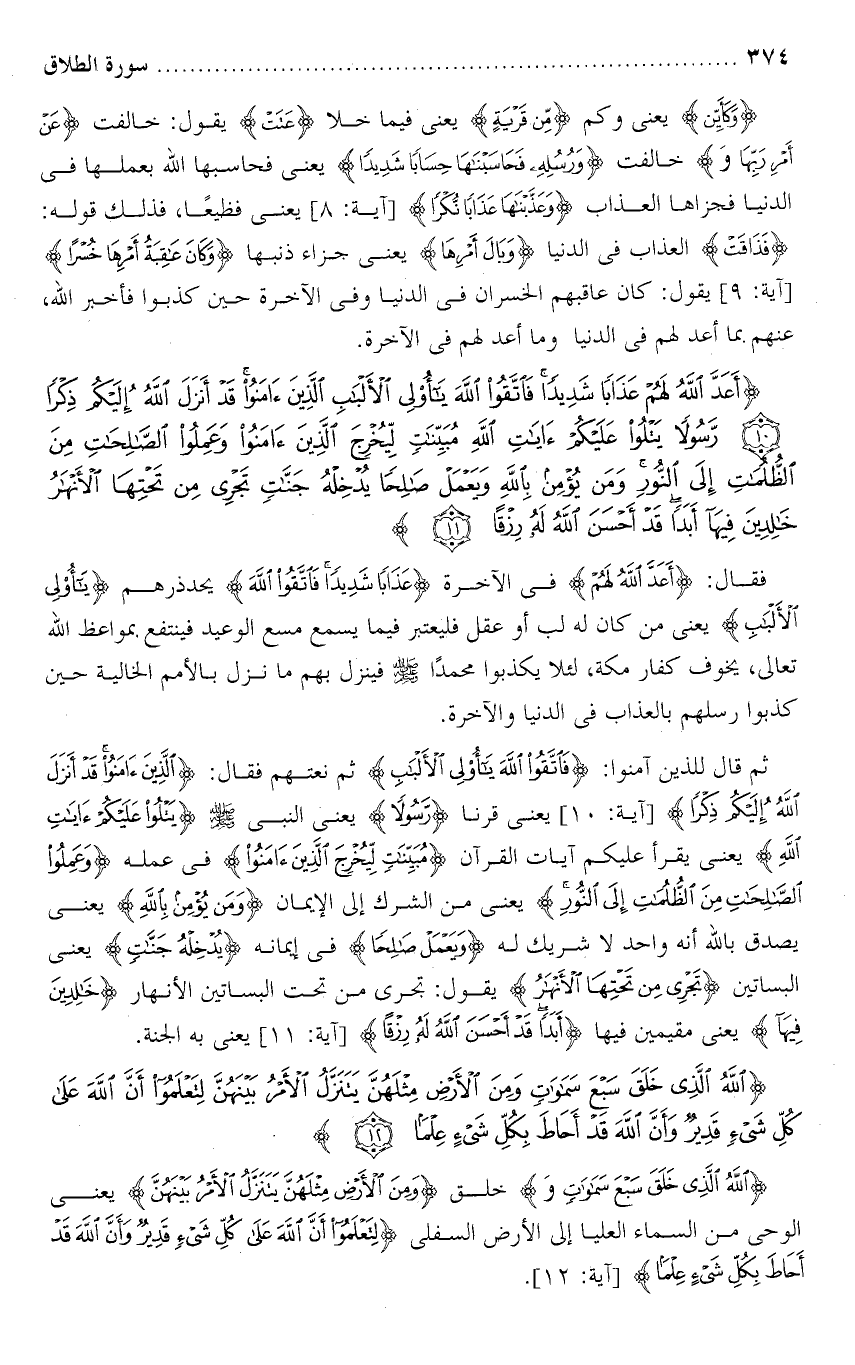 تفسير سورة الطلاق من الآية ( 12 ) فقط .