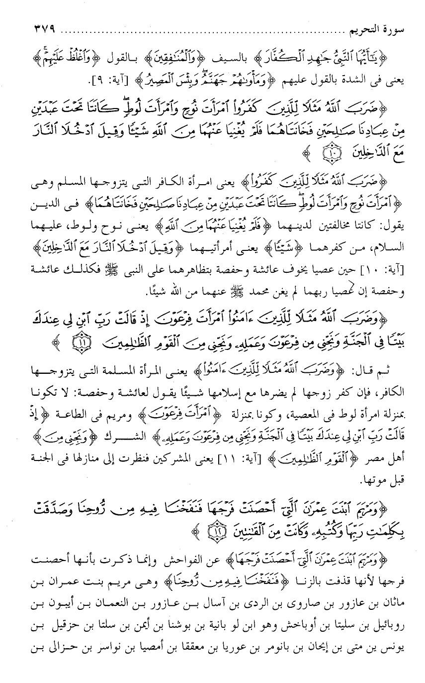 تفسير سورة التحريم من الآية ( 10 ) فقط .