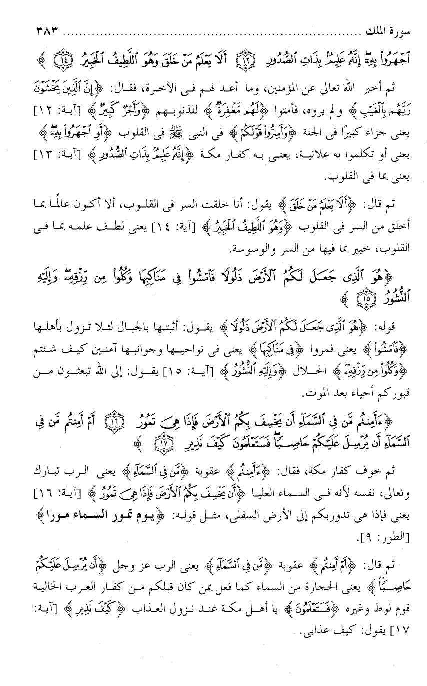 تفسير سورة الملك من الآية ( 15 ) فقط .