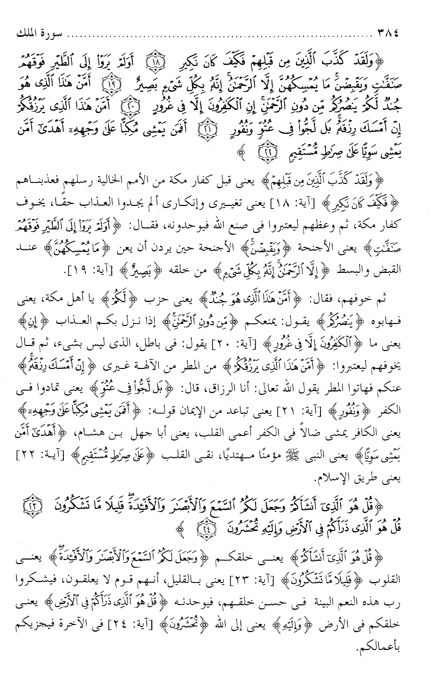 تفسير سورة الملك من الآية ( 18 ) إلى الآية ( 22 ) .