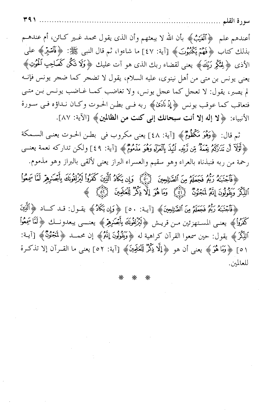 تفسير سورة القلم من الآية ( 50 ) إلى الآية ( 52 ) .
