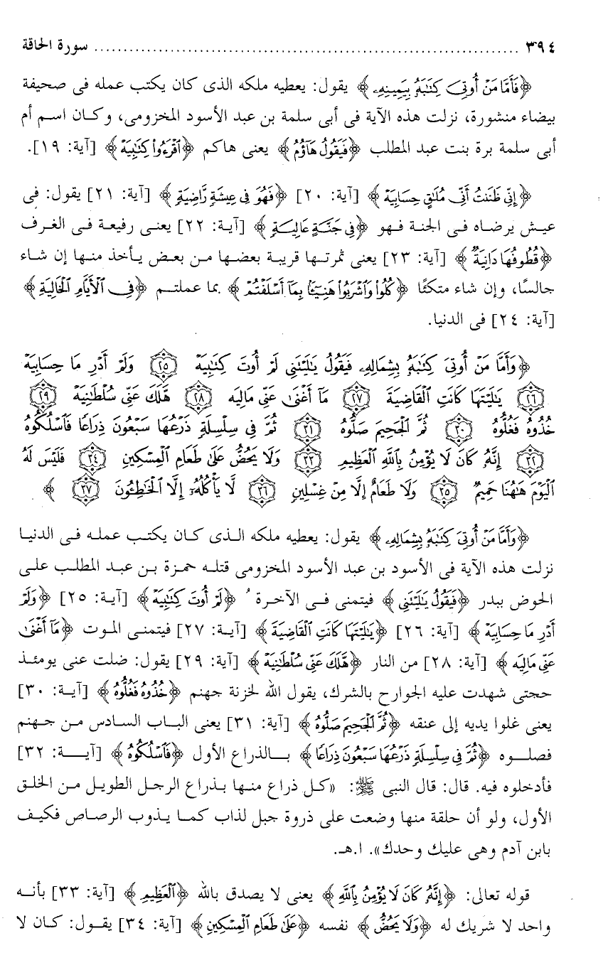 تفسير سورة الحاقة من الآية ( 25 ) إلى الآ ية ( 37 ) .