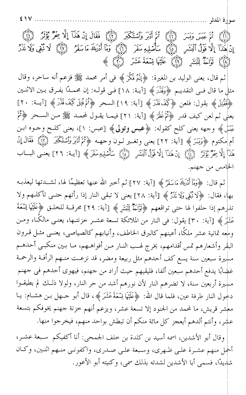 المدثر : ( 30 ) عليها تسعة عشر