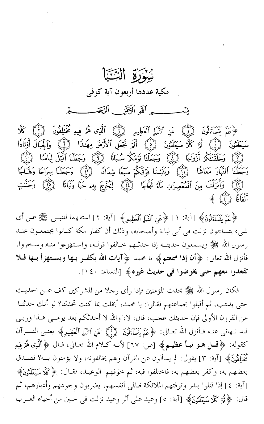 تفسير سورة النبأ من الآية ( 1 ) إلى الآية ( 16 ) .