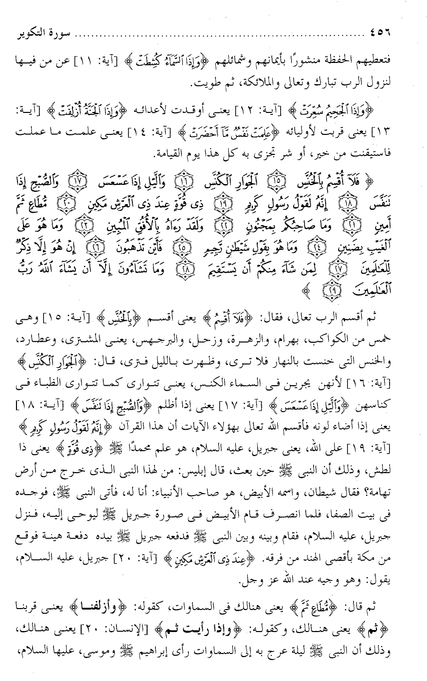 تفسير سورة التكوير من الآية ( 15 ) إلى الآية ( 29 ) .