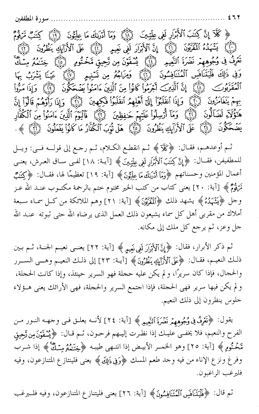 تفسير سورة المطففين من الآية ( 18 ) إلى الآية ( 26 ) .