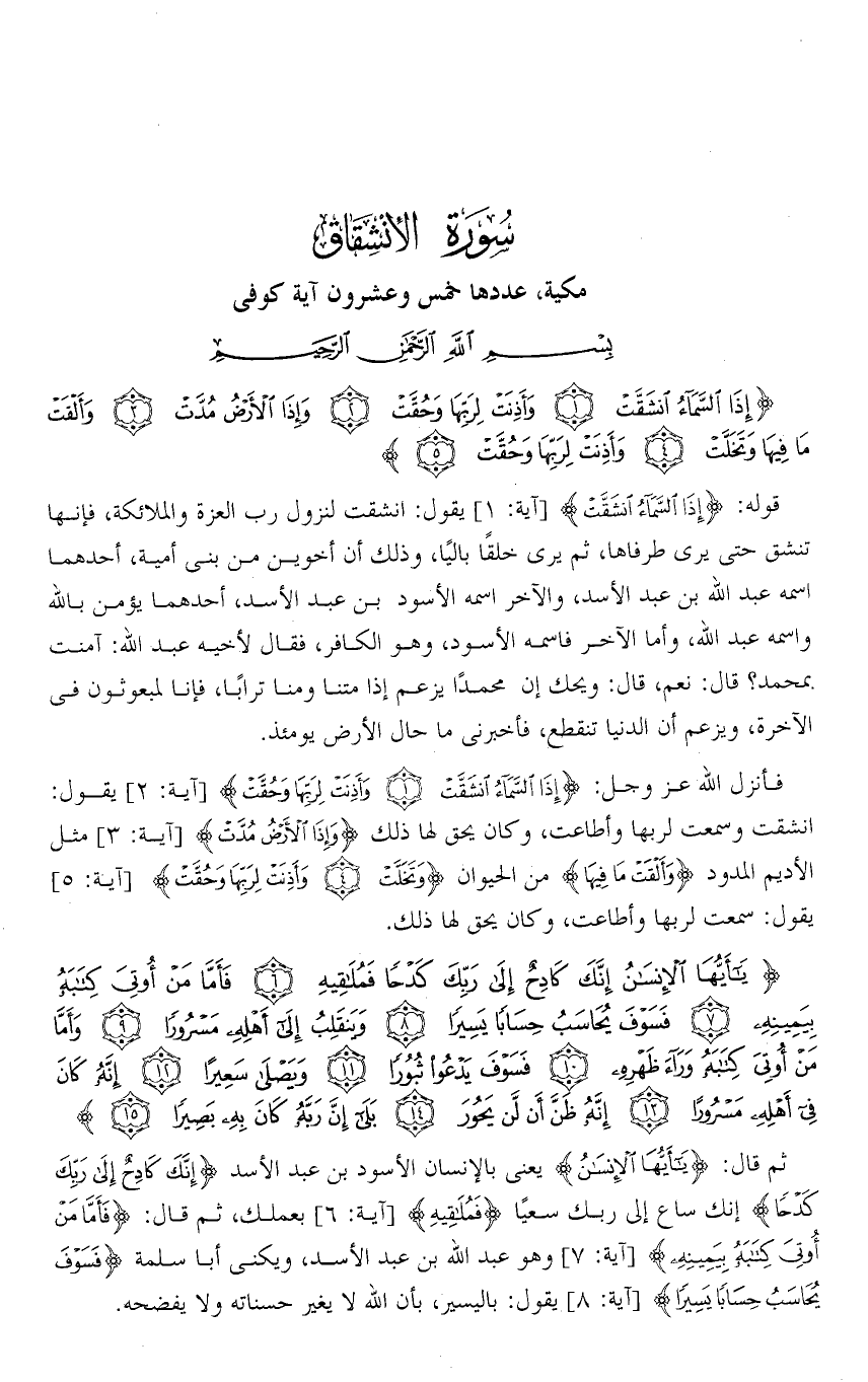تفسير سورة الانشقاق من الآية ( 1 ) إلى الآية ( 5 ) .