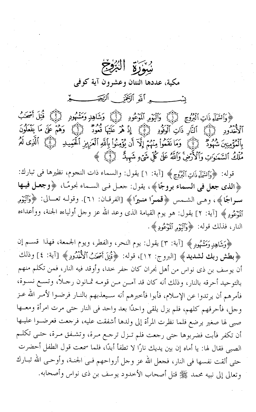 تفسير سورة البروج من الآية ( 1 ) إلى الآية ( 9 ) .