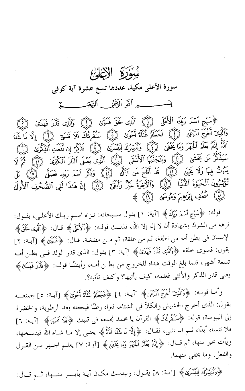 تفسير سورة الأعلى من الآية ( 1 ) إلى الآية ( 19 ) .