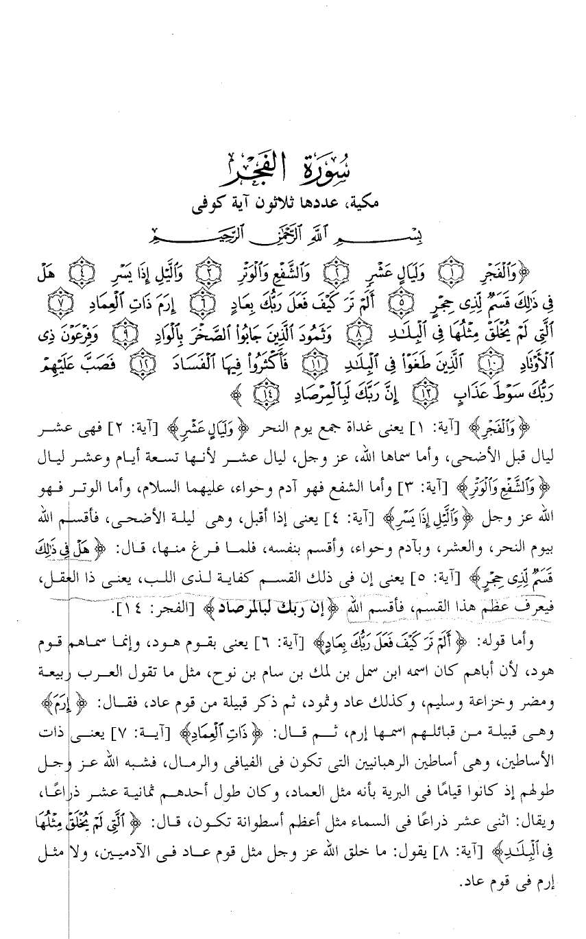 تفسير سورة الفجر من الآية ( 1 ) إلى الآية ( 14 ) .