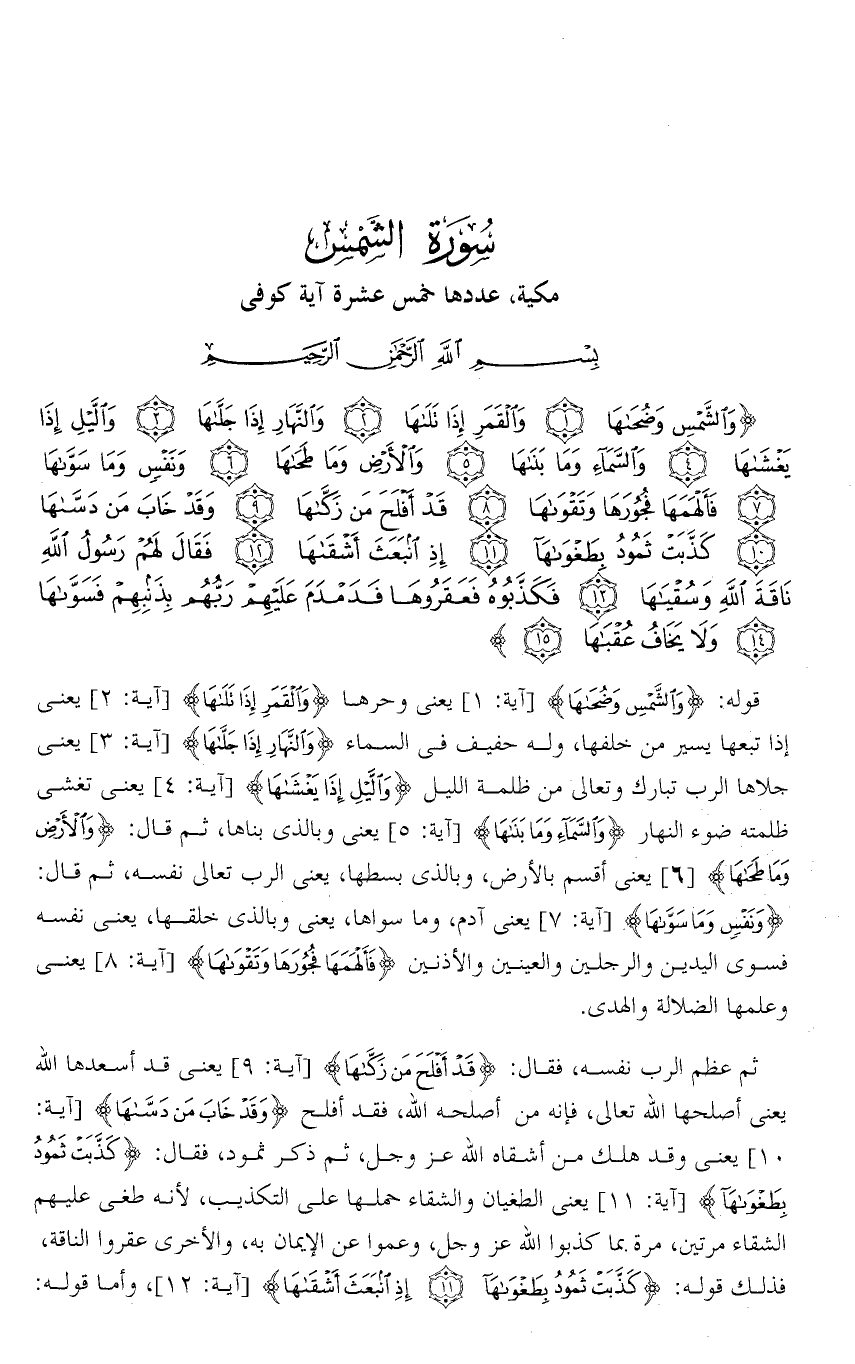 تفسير سورة الشمس من الآية ( 1 ) إلى الآية ( 15 ) .