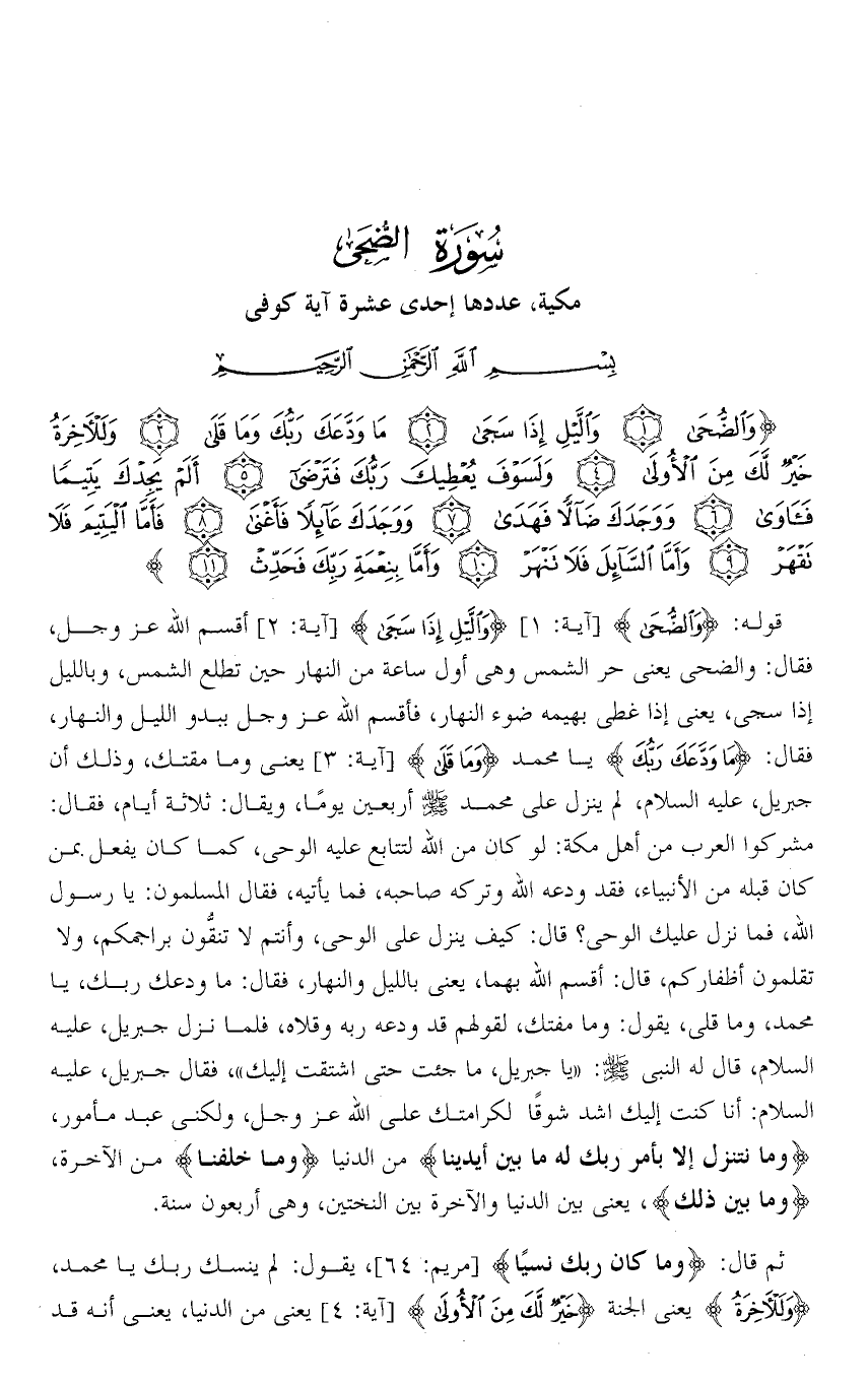 تفسير سورة الضحى من الآية ( 1 ) إلى الآية ( 11 ) .
