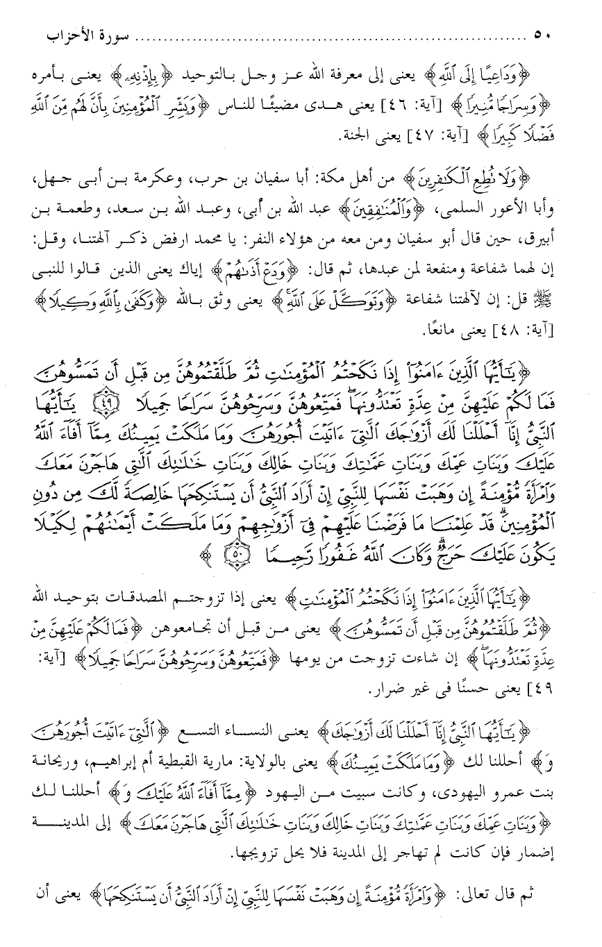 تفسير سورة الأحزاب من الآية ( 49 ) إلى الآية ( 50 ) .