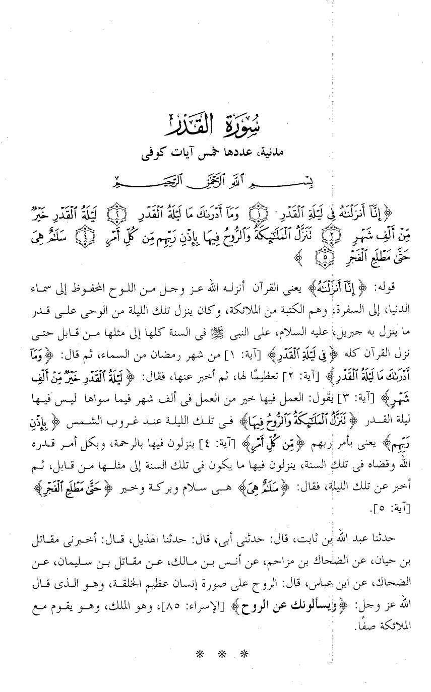 تفسير سورة القدر من الآية ( 1 ) إلى الآية ( 5 ) .