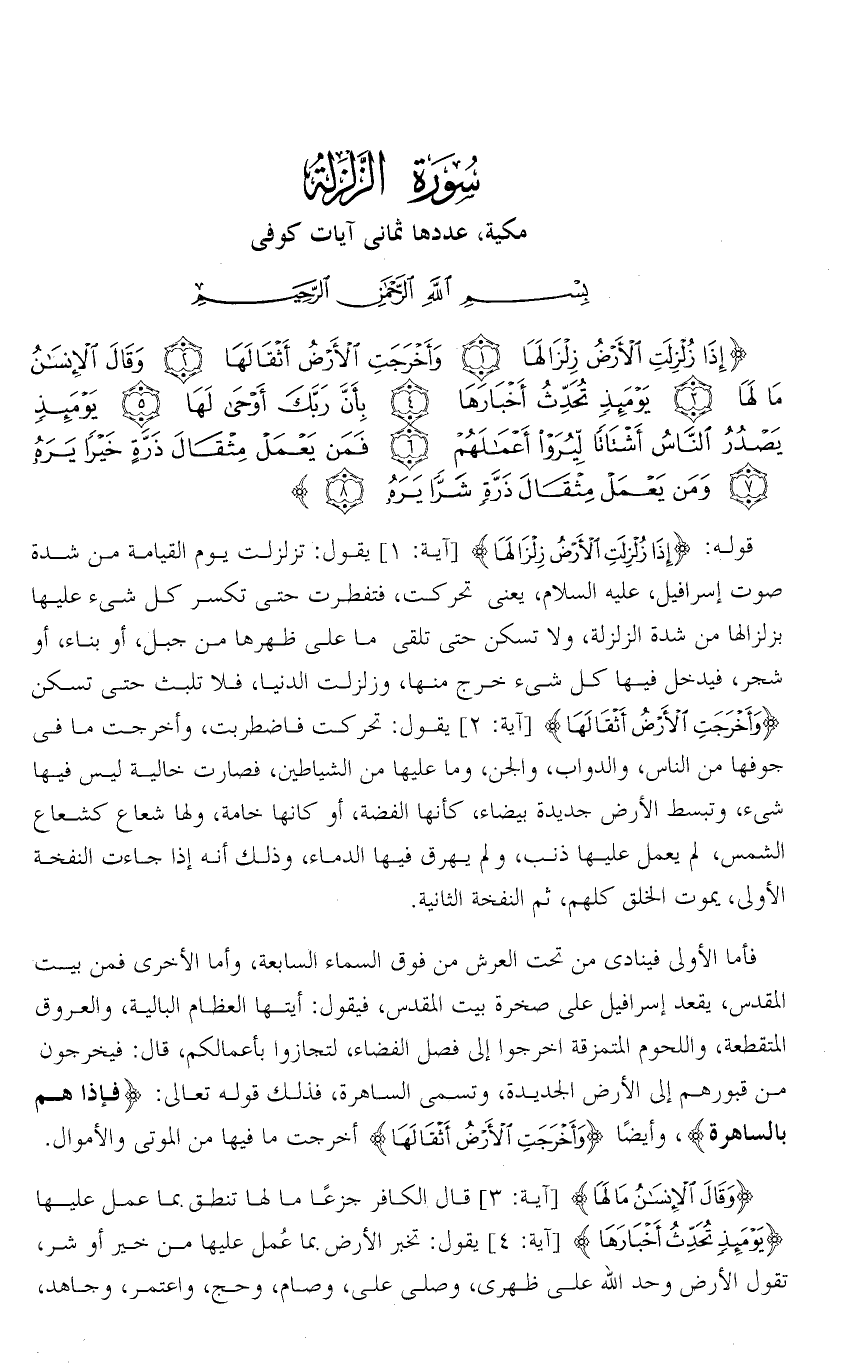 تفسير سورة الزلزلة من الآية ( 1 ) إلى الآية ( 8 ) .