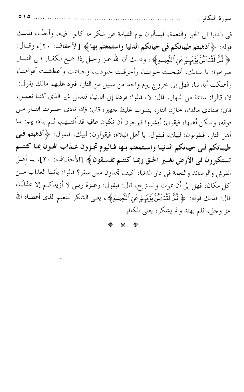 ( ثم لتسئلن يومئذٍ عن النعيم ( ، وذلك أن الله عز وجل إذا جمع الكفار في النار