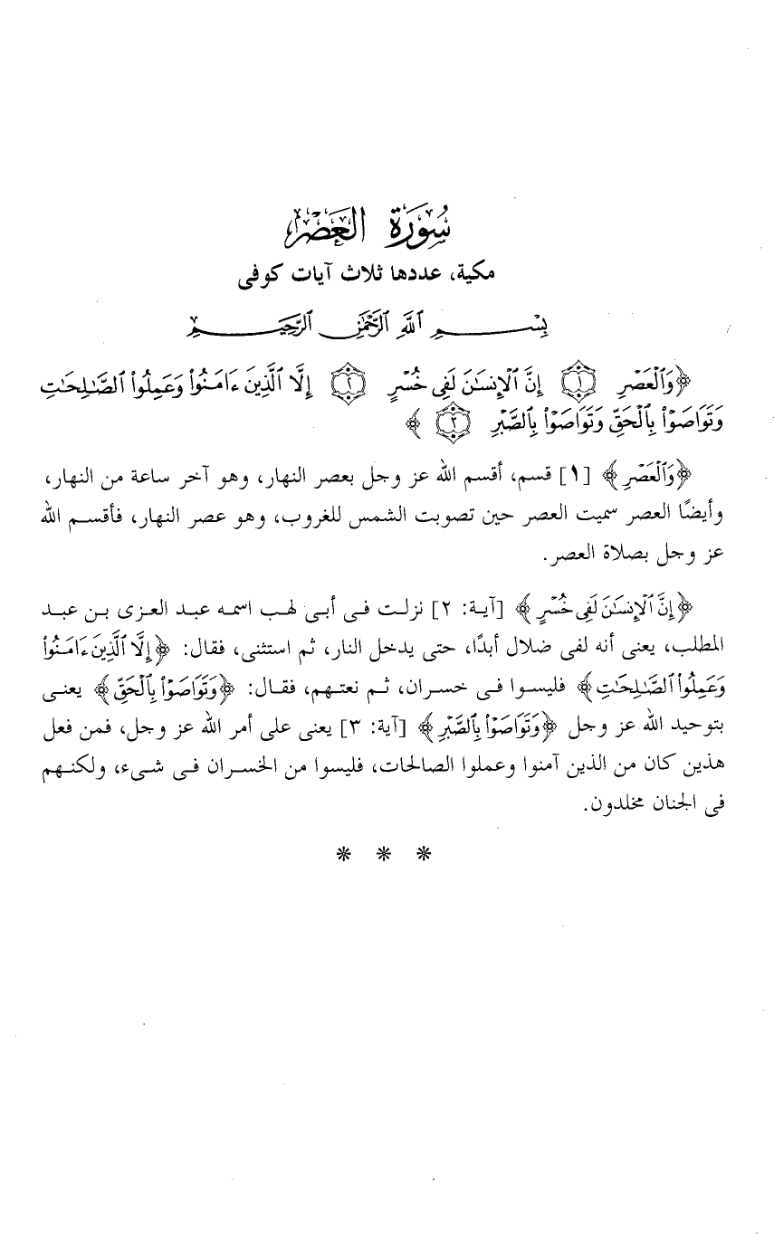 تفسير سورة العصر من الآية ( 1 ) إلى الآية ( 2 ) .