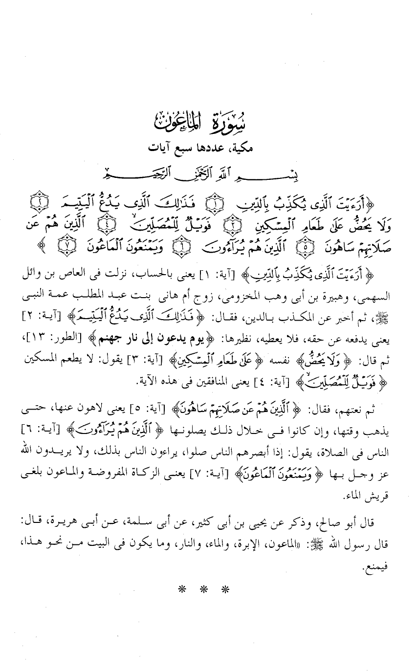 تفسير سورة الماعون من الآية ( 1 ) إلى الآية ( 7 ) .