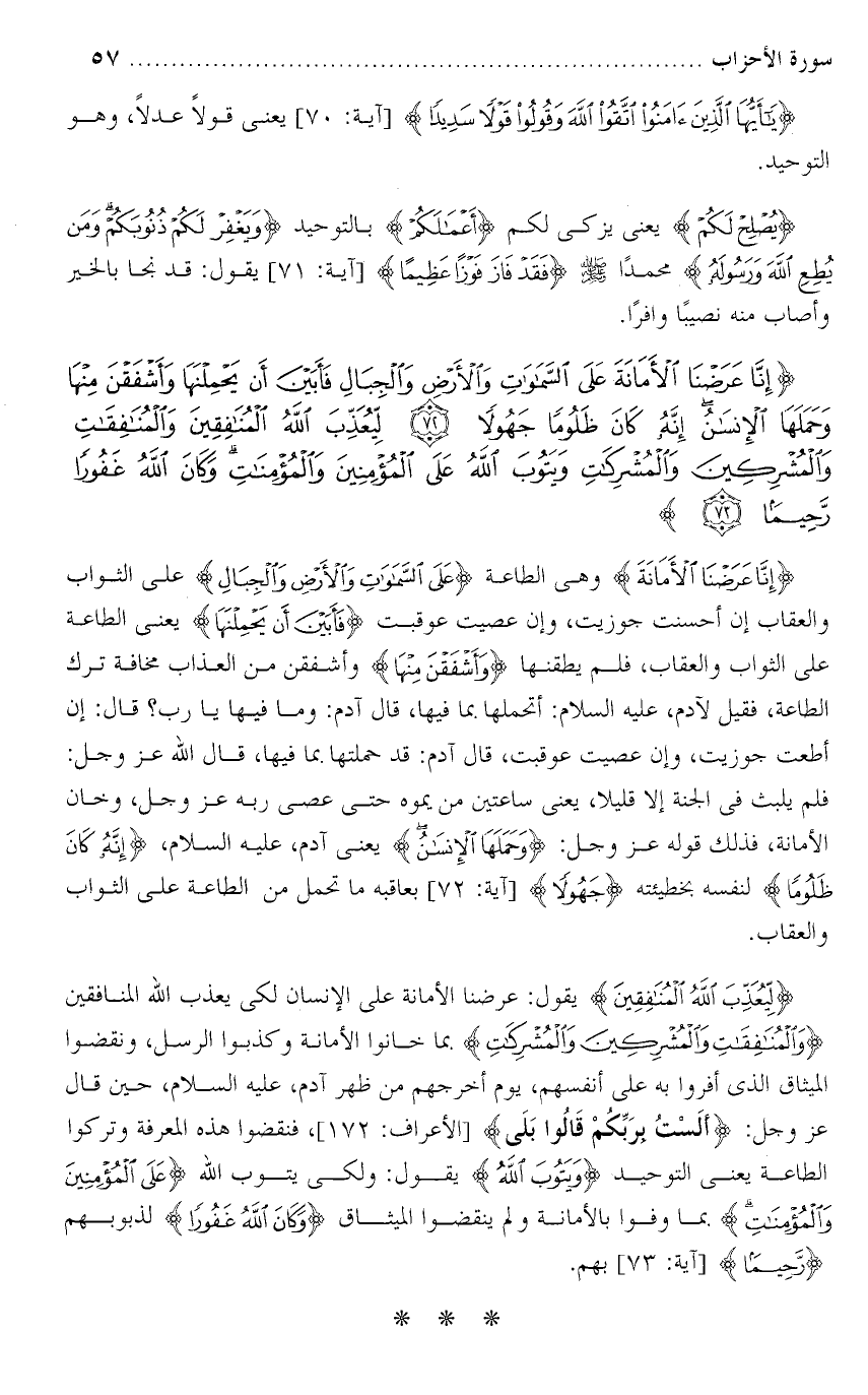 الأحزاب : ( 72 ) إنا عرضنا الأمانة . . . . .