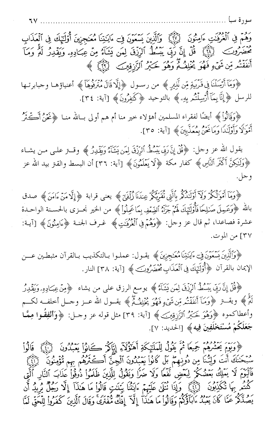 سبأ : ( 36 ) قل إن ربي . . . . .