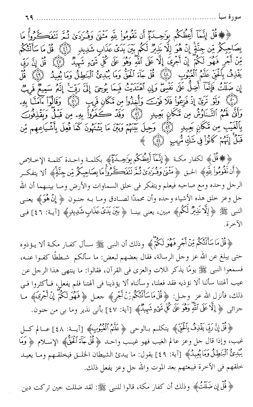 تفسير سورة سبأ من الآية ( 46 ) إلى الآية ( 54 ) .
