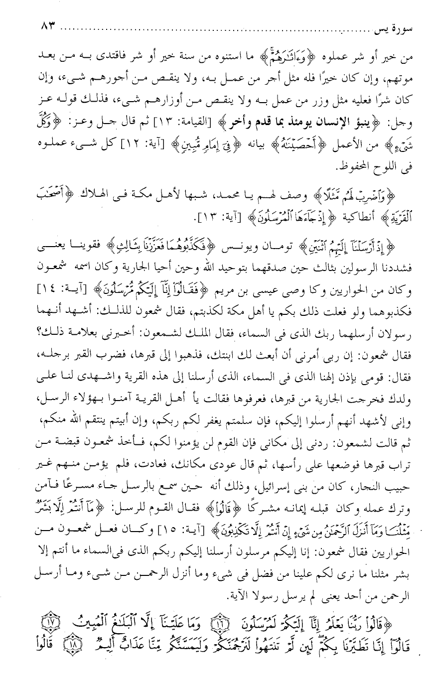 تفسير سورة يس من الآية ( 16 ) إلى الآية ( 25 ) .