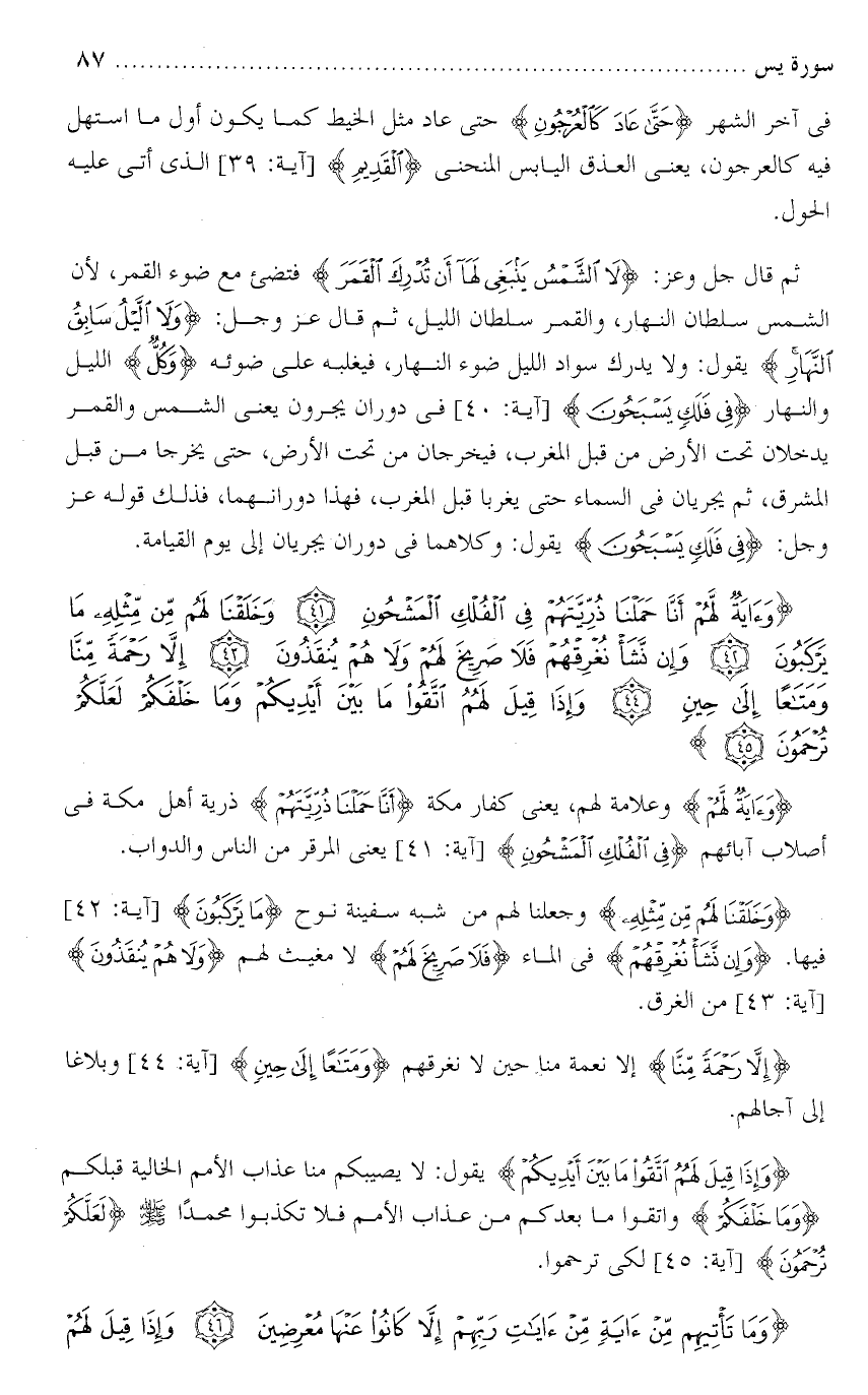 تفسير سورة يس من الآية ( 41 ) إلى الآية ( 45 ) .