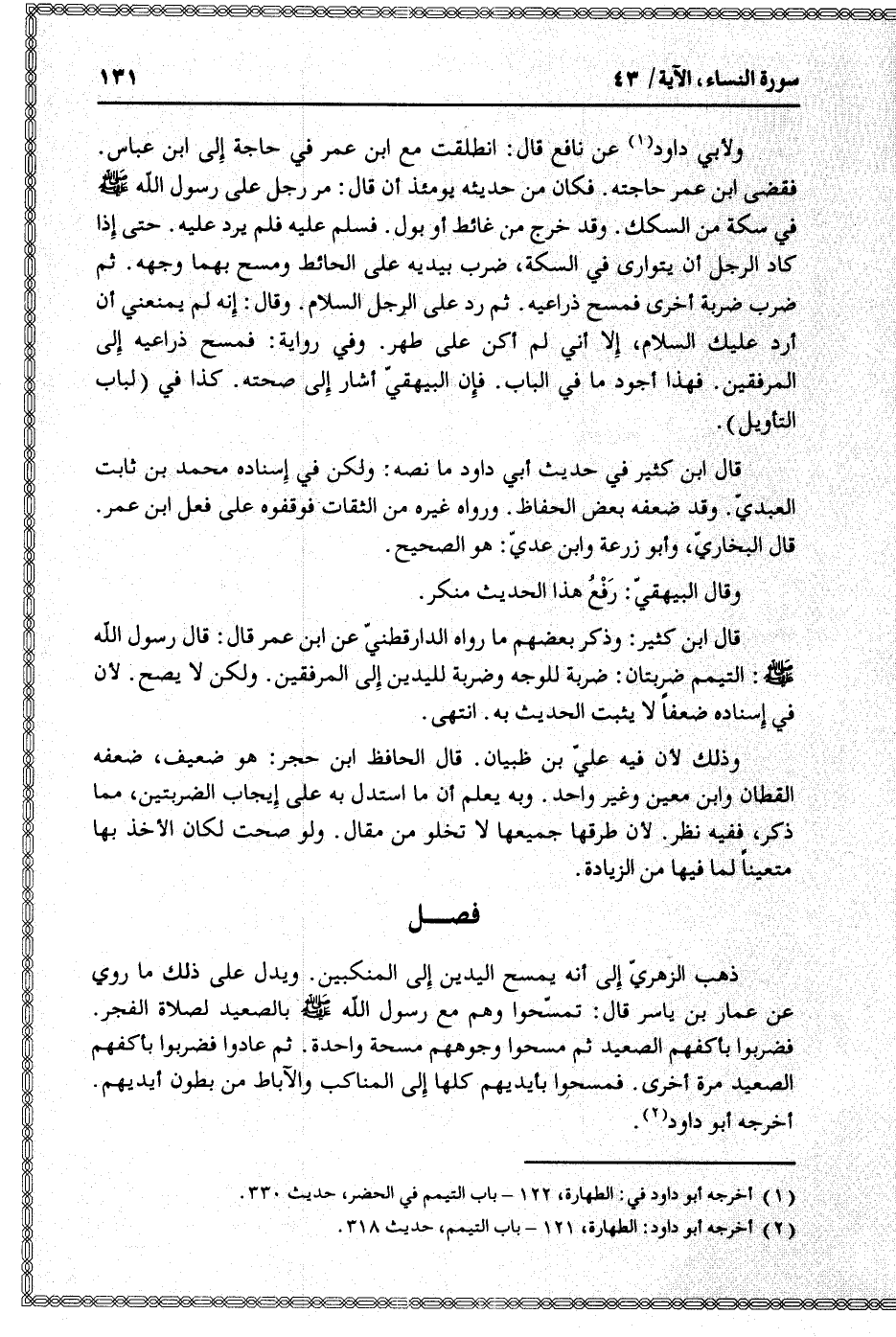 (2) أخرجه أبو داود: الطهارة، 121- باب التيمم، حديث 318.