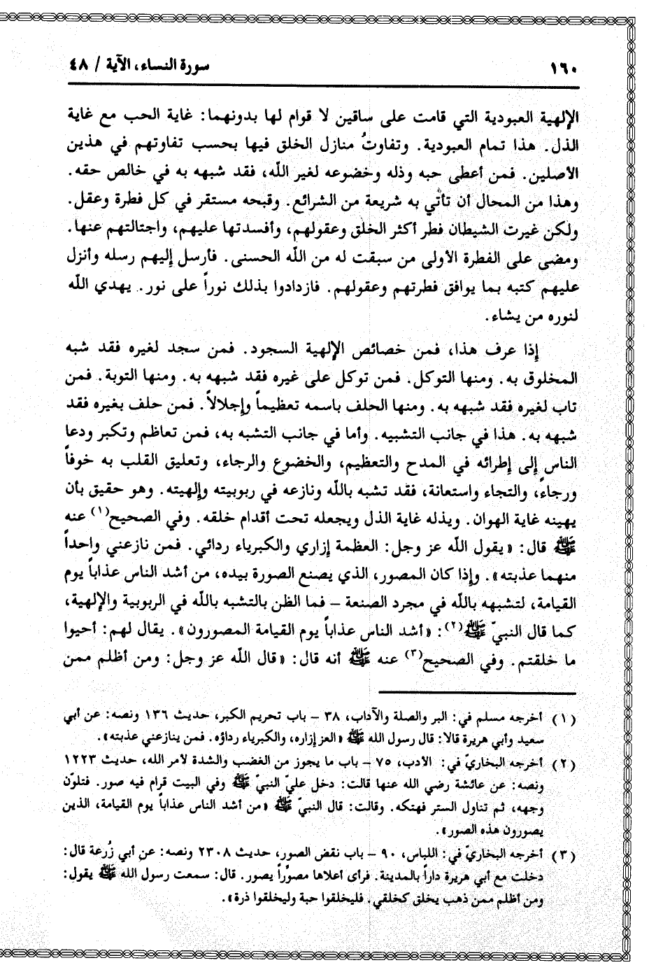 . وإذا كان المصور، الذي يصنع الصورة بيده، من أشد الناس عذابا يوم القيامة، لتشبهه بالله في مجرد الصنعة- فما الظن بالتشبه بالله في الربوبية والإلهية، كما
