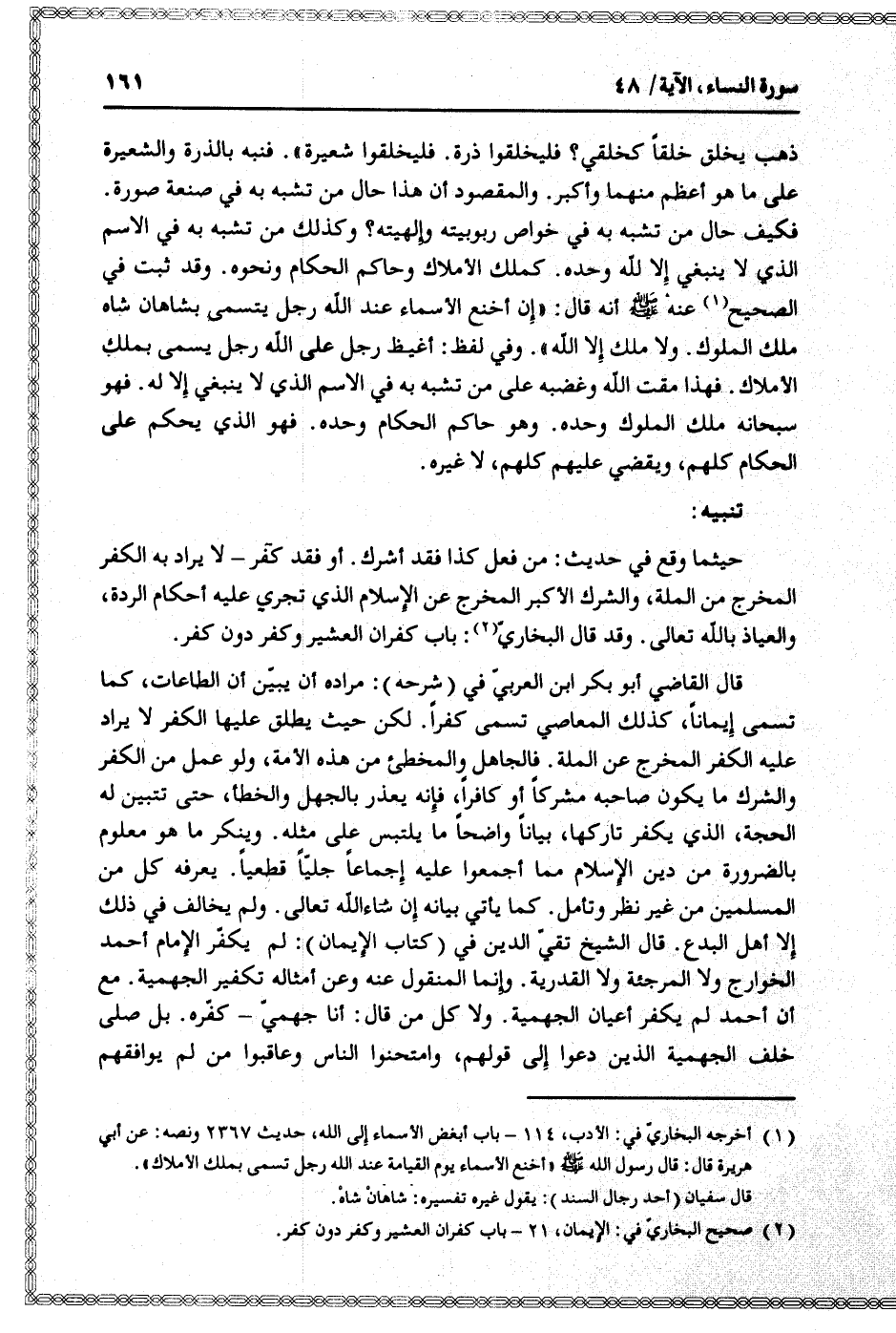 (2) صحيح البخاريّ في: الإيمان، 21- باب كفران العشير وكفر دون كفر.
