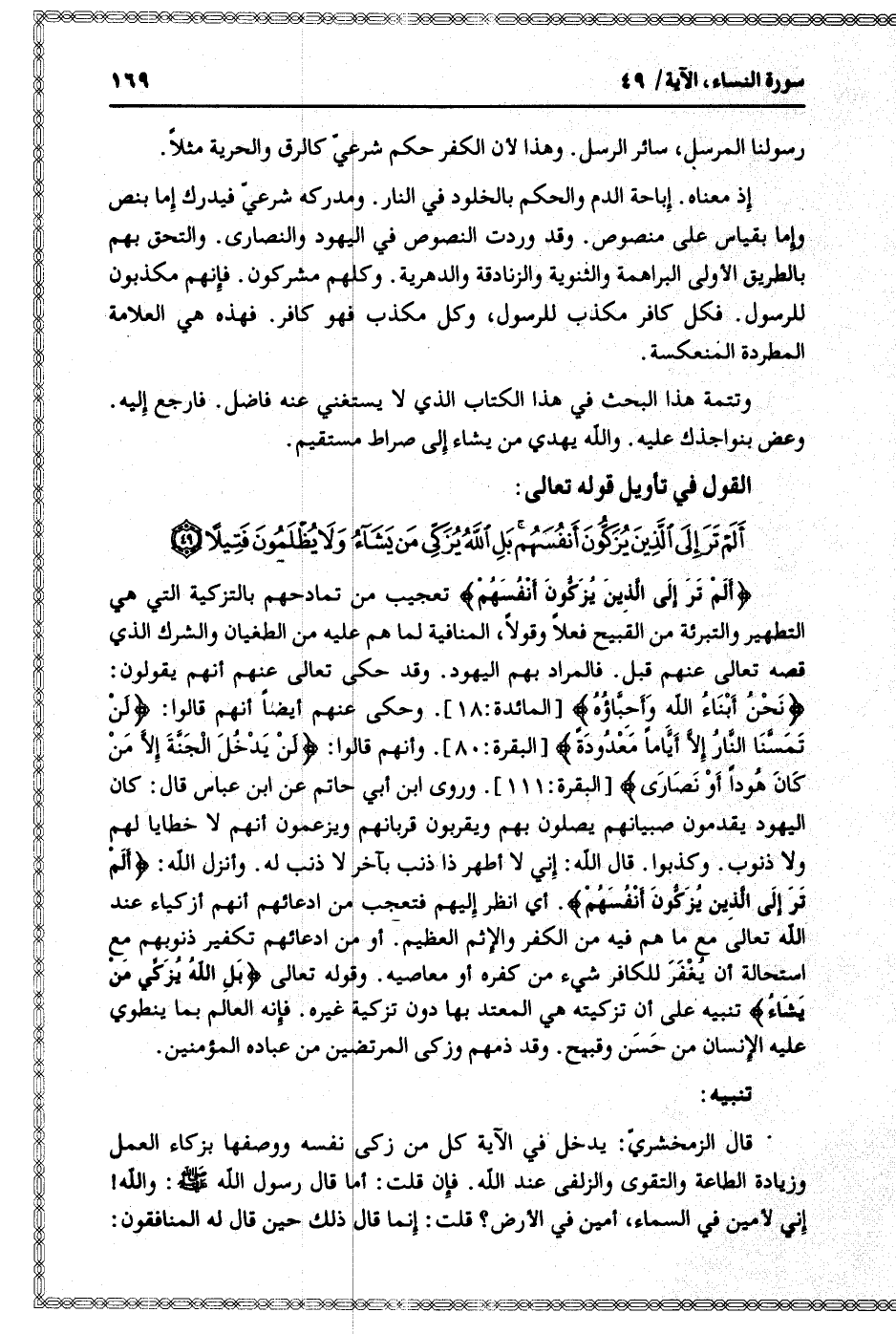 القول في تأويل قوله تعالى: [سورة النساء (4) : آية 49]